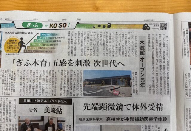社長の藤井です。 11月1日 中日新聞朝刊に 「ぎふ木遊館」開館5年がたち 「ぎふ木育」について掲載されました。 来場者は、20万人を...