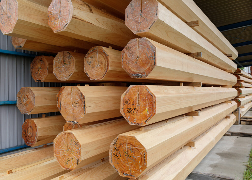 株式会社トーホーでは、社寺建築用に東濃桧柱材を製材し納品いたします。