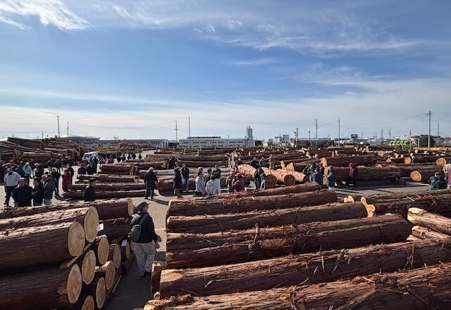 社長の藤井です。 東海木材相互市場大口市場で、2月記念市がたちました。 多くの買い方が集まりました。 原木シーズンが終わりに近づき、太...