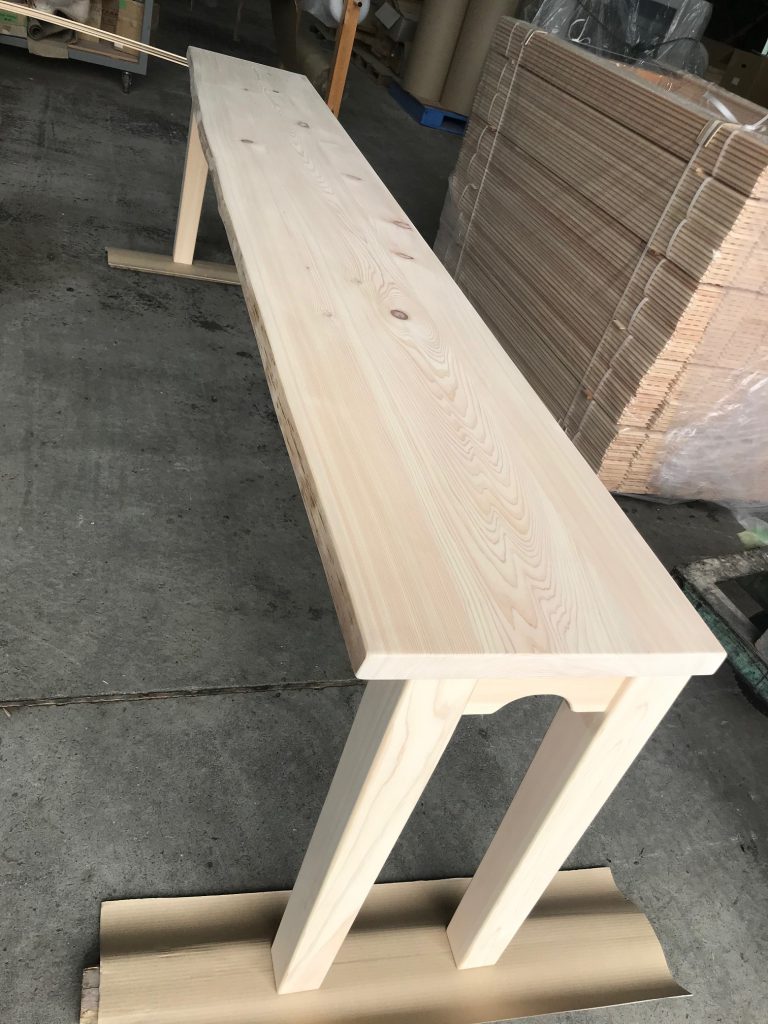 桧の節ありで、天板の端は自然の凸凹の仕上げにしてあります。