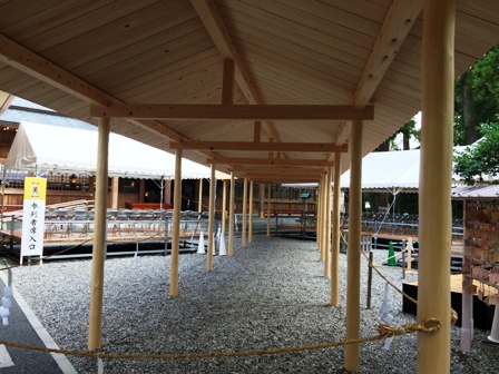 昨晩に遷宮が終り、雨儀廊と呼ばれる総桧造りの屋根付近の通路は、本日10月25日15時より解体されます。