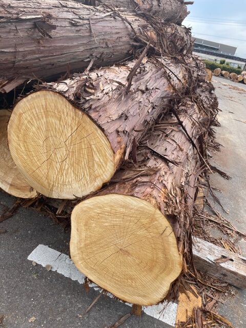 トーホーブログ 破風製材 2023.03.11 社長の藤井です。 短くても曲りの大きい破風に見合う丸太がようやくありました。 原木市場に入荷したばかりで検尺もしてません。 後日、並べてもらい型をあてるとギリギリ取れそうです。 製材するとギリギリです。 元株の直径は750mmあってもどうにか2枚取れそうです。 なぜか、破風を挽くときギリギリ型に入り、余裕で取れることがまずありません。 2枚目の厚さを決めて、完成です。 割れないように乾燥工程に入ります。 Share RSS Pin it トーホーブログ サウナ部材の塗装風景 笠置山山頂