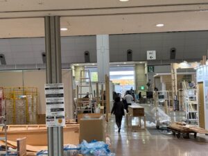 会場は、ブース設営のため混雑しています。