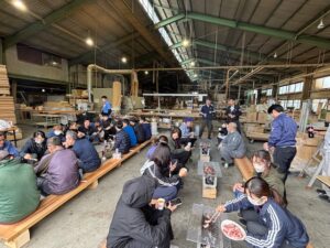 トーホーブログ 11月の出来事 2025.11.01 社長の藤井です。 8~9日 高山市にある、ひだ木遊館で 「つみマスくみマス」イベントが 開催されました。 8日は、トーホー社内で 芋煮会を開きました。 猪肉を焼き食べます。 うり坊です。 おいしい! 芋煮です。 女性陣は、腕を振るってくれました。 豚汁です。 焼きさんまです。 天然鮎は、 佐伯さんの差し入れです。 チキンは、 忍さんの差し入れです。 新米塩おにぎりです。 12月の忙しい時節を 元気に乗りこえます。 Share RSS Pin it トーホーブログ 木ポイントさんのウッドフェスに出展しました 10月記念市
