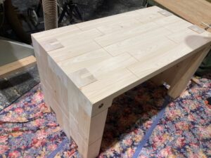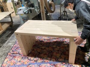 前回、少し紹介した、つみマスくみマスのテーブルとベンチの製作の風景です。