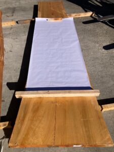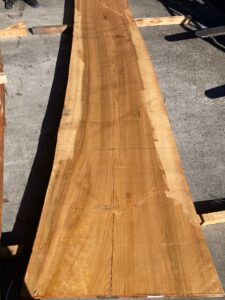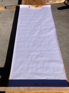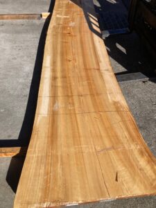 トーホーブログ 幅広の桧の懸魚 2026.01.23 営業の中島です。 先日、社寺の懸魚に使う板に型を当てました。 懸魚とは破風の拝み(頂点)のすぐ下にぶら下がるように取り付く板に彫刻が施された物になります。 この懸魚の横幅に必要な寸法は800mmと広い為、製材するのにとても苦労しました。 懸魚も両側の妻面に取り付く為、2枚必要になります。 しかも板の両面とも化粧が必要となると、とても難しくなります。 元に割れが入っていますが長さを切る為、なんとか間に合わせる事が出来ました。 良かったです。 Share RSS Pin it トーホーブログ ひのき接ぎカウンター