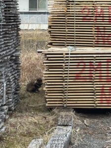材料を確認に行くと、動きの遅いタヌキがいました。