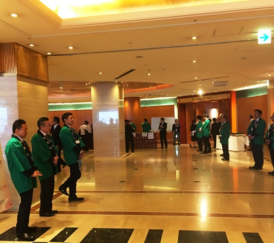 城山観光ホテルにて、青い法被で御迎えして貰います。